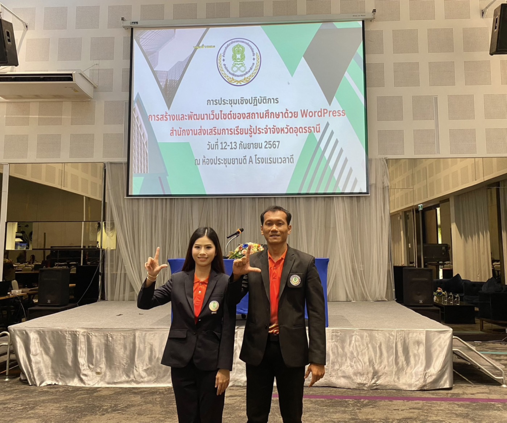 ครูหยกและครูสุนทรเข้าร่วมโครงการประชุมเชิงปฏิบัติการ การสร้างและพัฒนาเว็บไซต์สำหรับสถานศึกษาด้วย WordPress ระหว่างวันที่ 12-13 กันยายน 2567 ณ โรงแรมเวลาดี ตำบลหมากแข้ง อำเภอเมืองอุดรธานี จังหวัดอุดรธานี